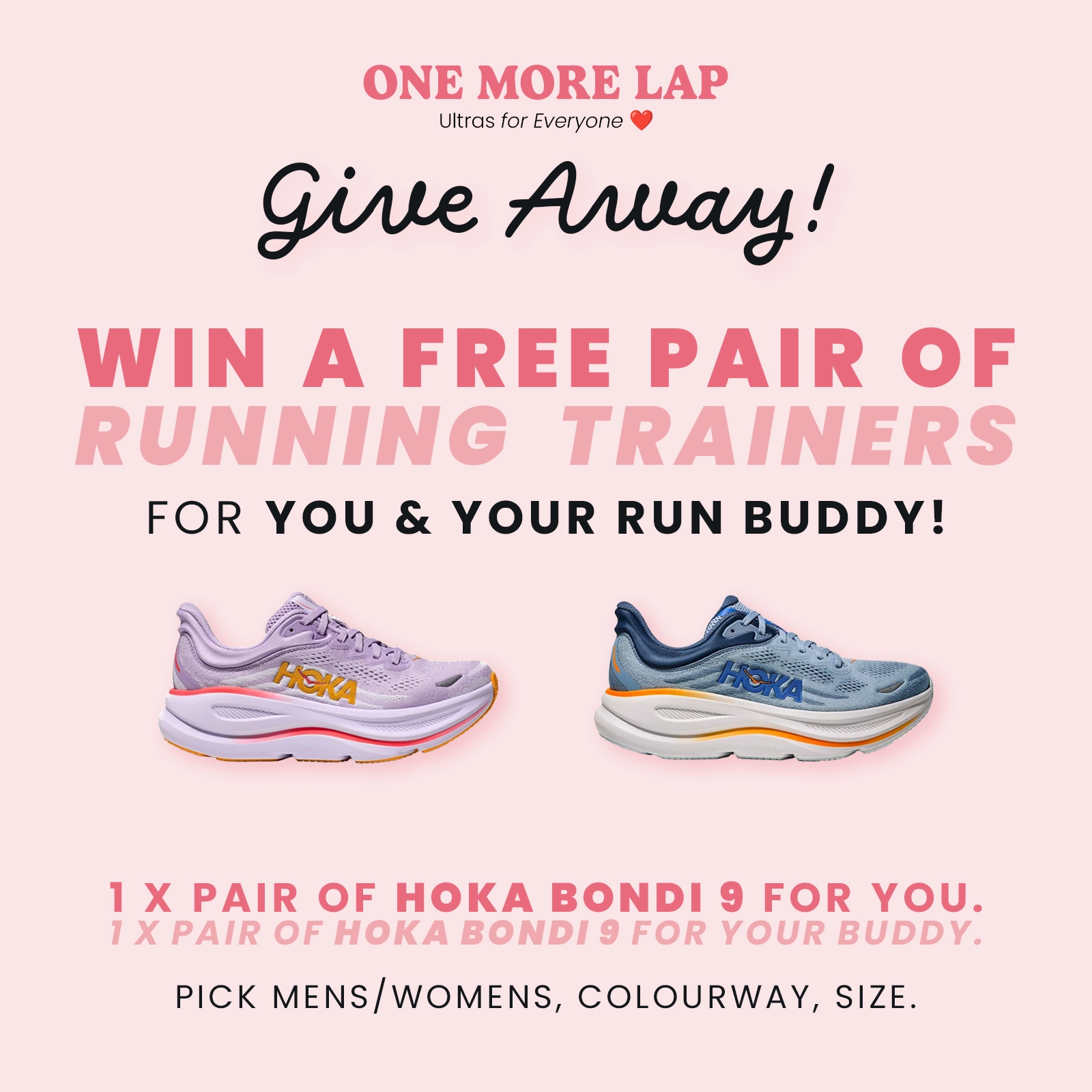 The prize is two (2) pairs of Hoka Bondi 9 running shoes.